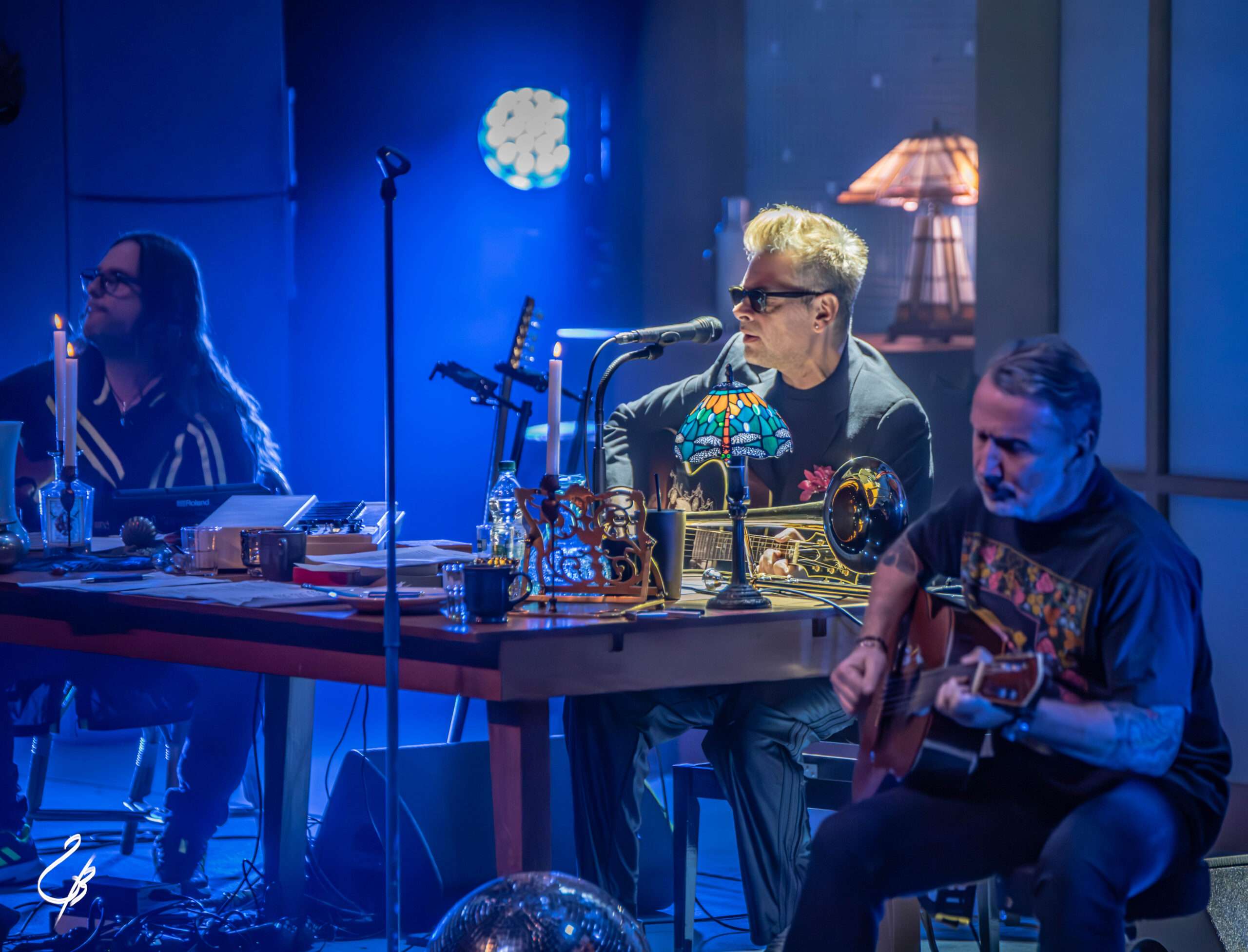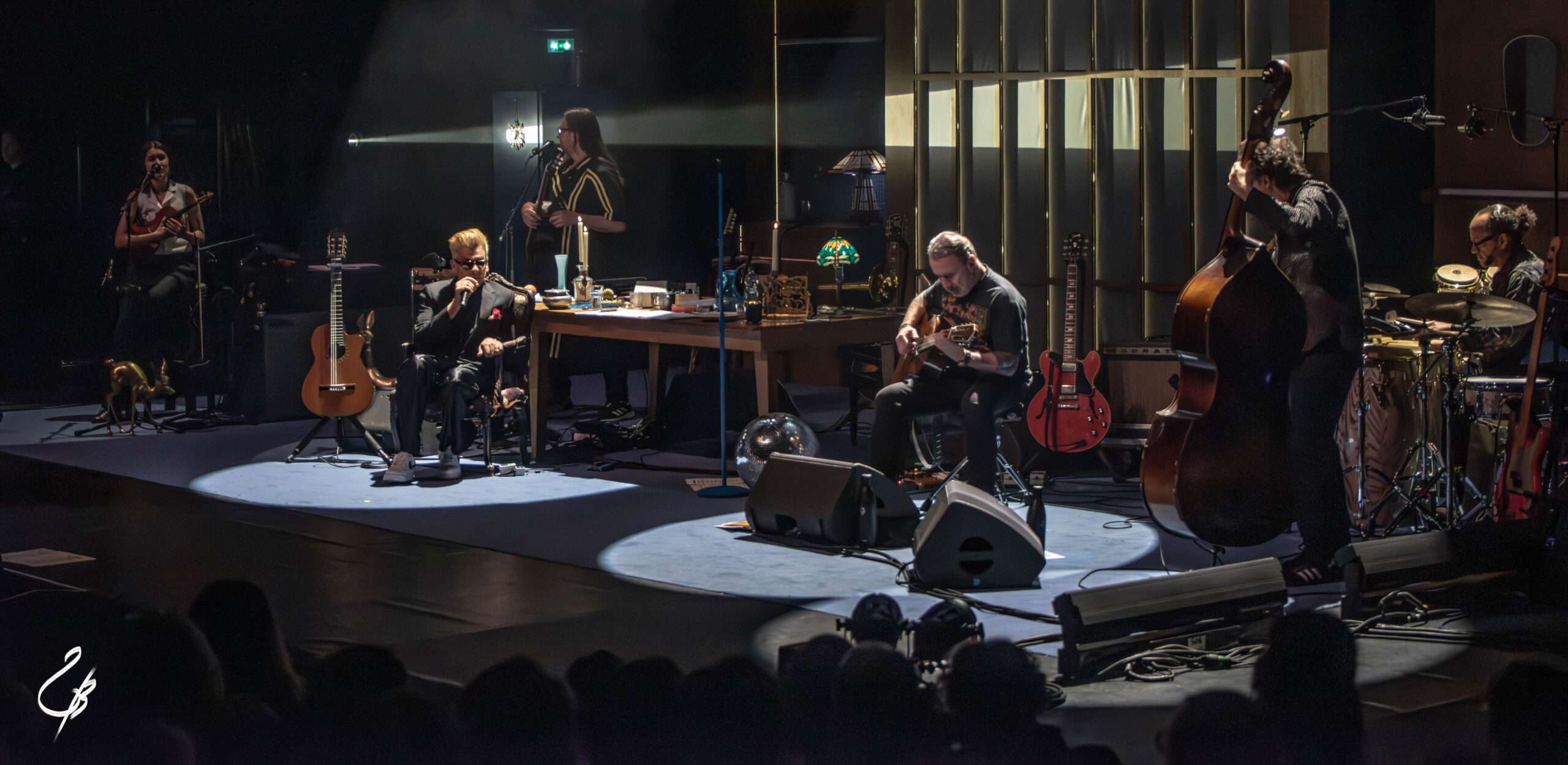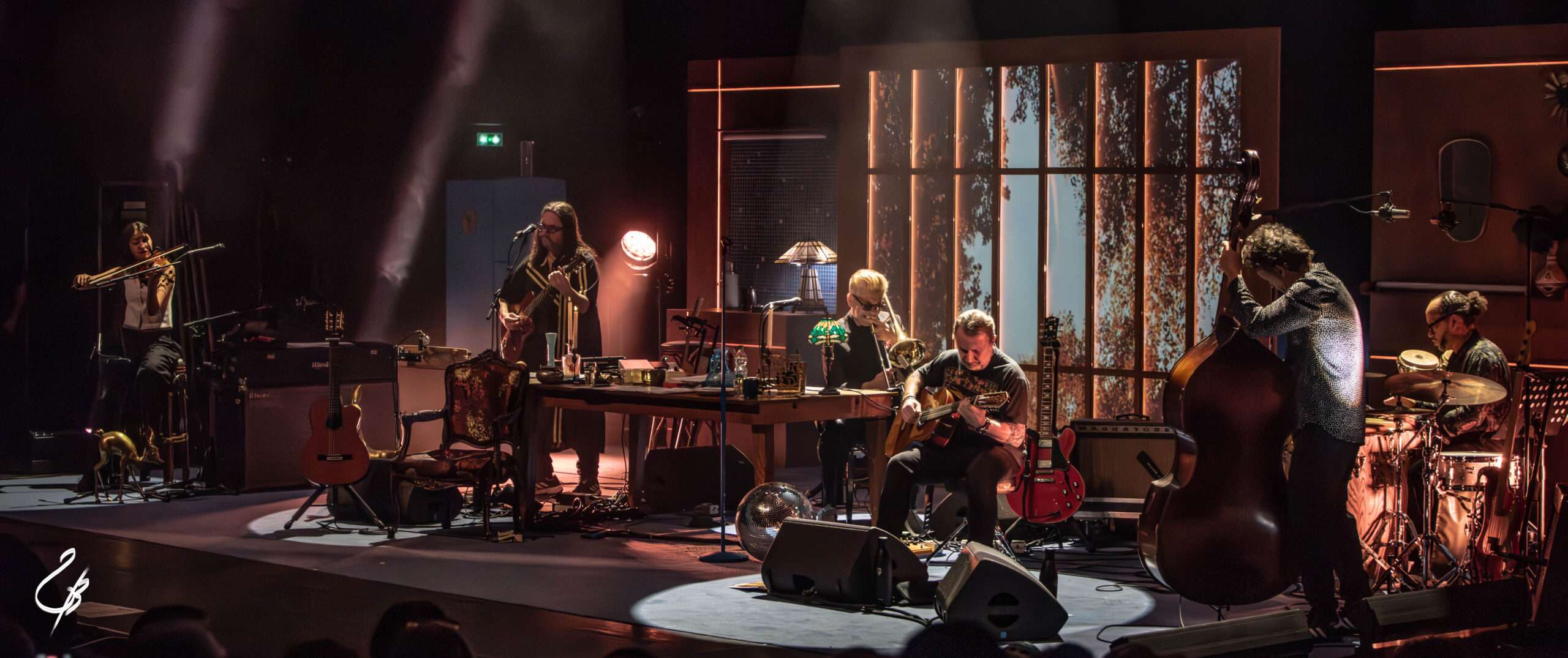 Petit portfolio de cette soirée avec une mise en scène très intimiste: une grande table, des amis musiciens, un fauteuil et un public conquis par cette ambiance feutrée et tenant à plus d’un titre d’instant volé, comme une confession.