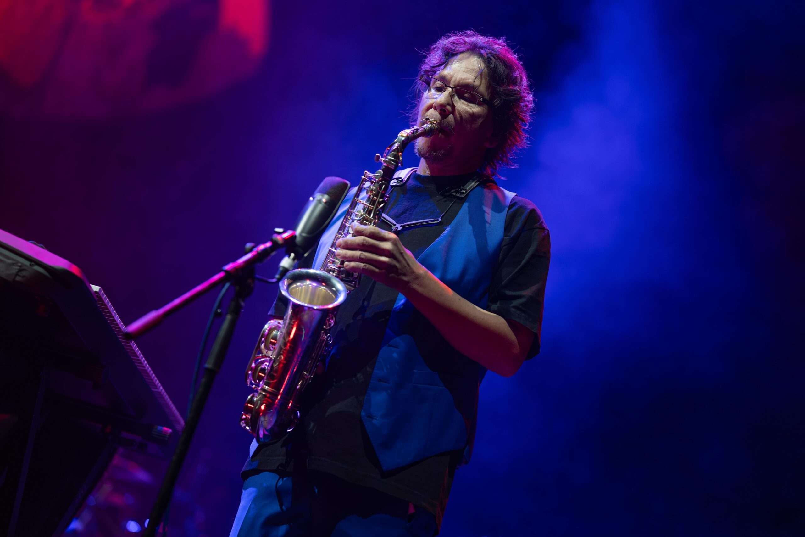 L’un des aspects les plus marquants de la performance réside dans sa capacité à instaurer une proximité inattendue. Malgré la configuration du lieu, Christopher Cross parvient à créer une atmosphère presque intimiste, privilégiant la musicalité à l’effet spectaculaire.