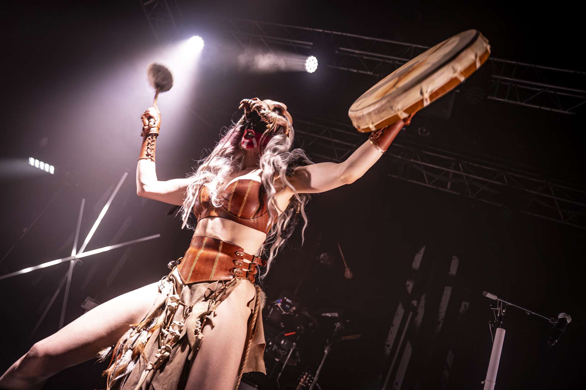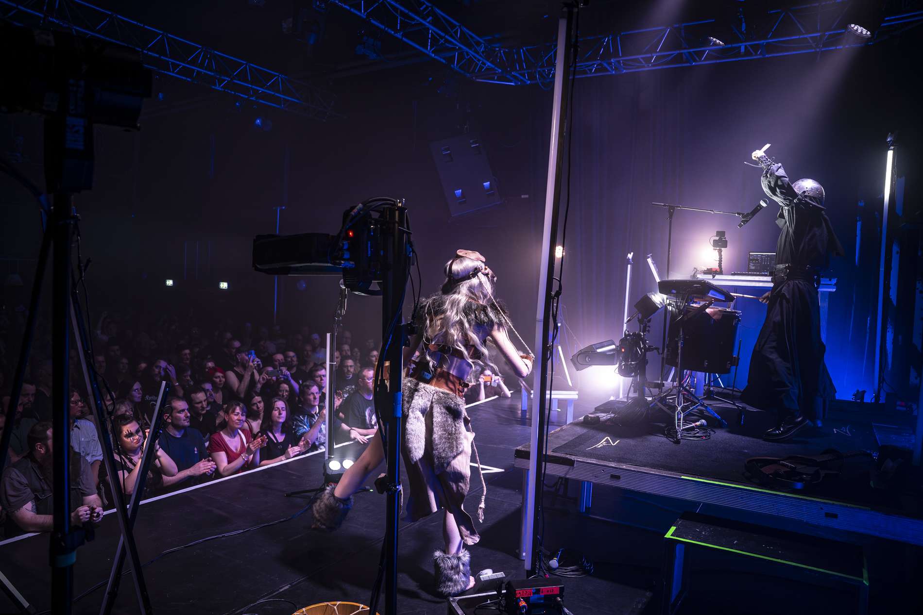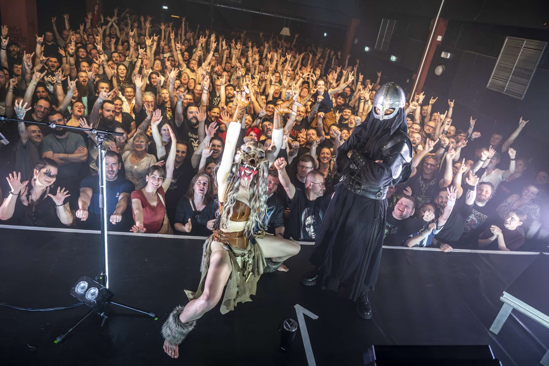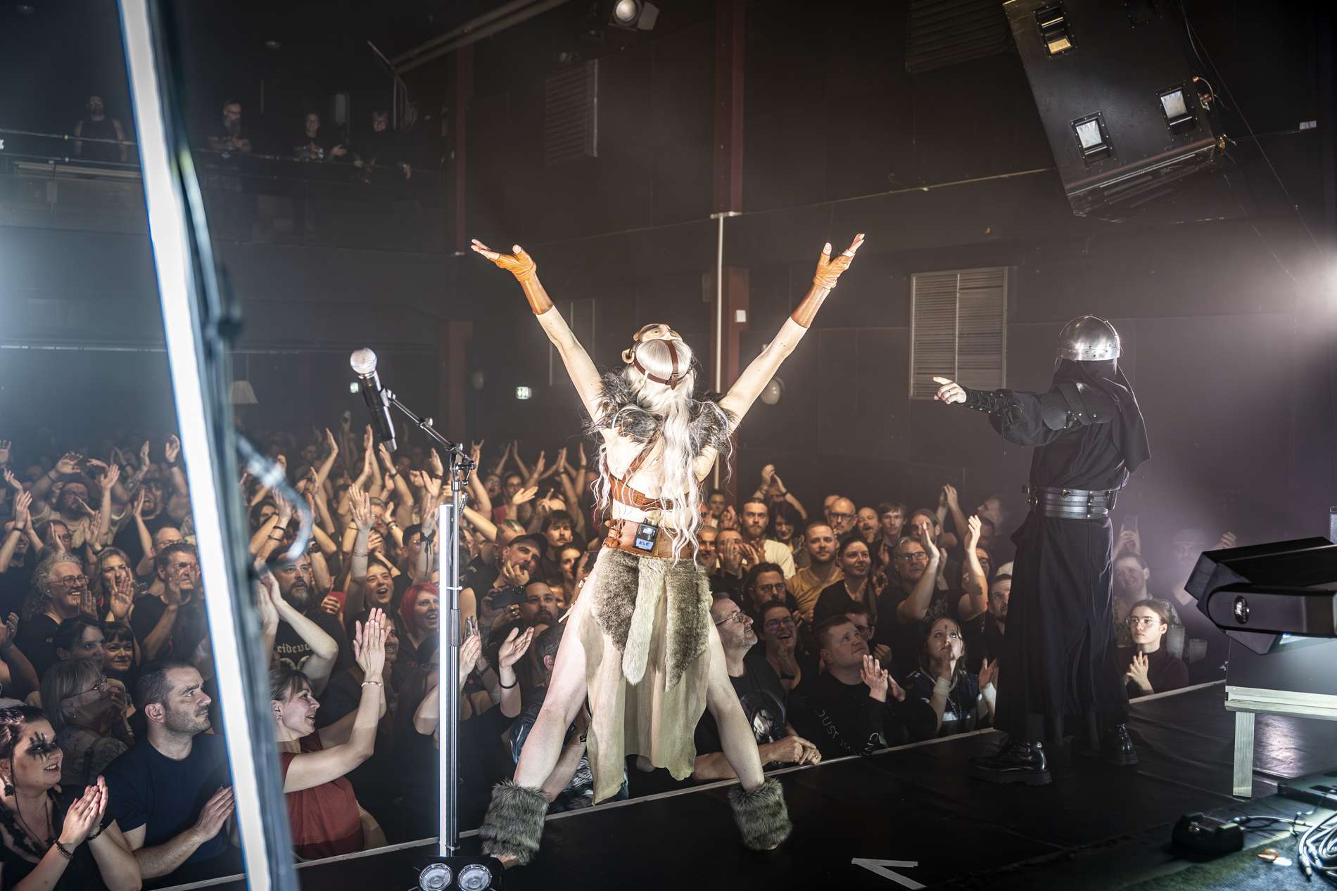 Puis, un moment de calme se présente avec l’interprétation de Ljósgarðr, qui signifie « jardin de lumière ». Avant le début de la chanson, la chanteuse, Asrunn, prend la parole et invite le public à se connecter à lui-même. Elle décrit la chanson comme une passerelle, un lien entre nous et nos êtres de lumière. C’est lorsque cette passerelle s’ouvre que l’on peut recevoir un message, un conseil de nos guides. La salle, d’ordinaire agitée, se calme instantanément. Chacun se concentre sur lui-même, dans un silence presque sacré. On perçoit une introspection partagée.