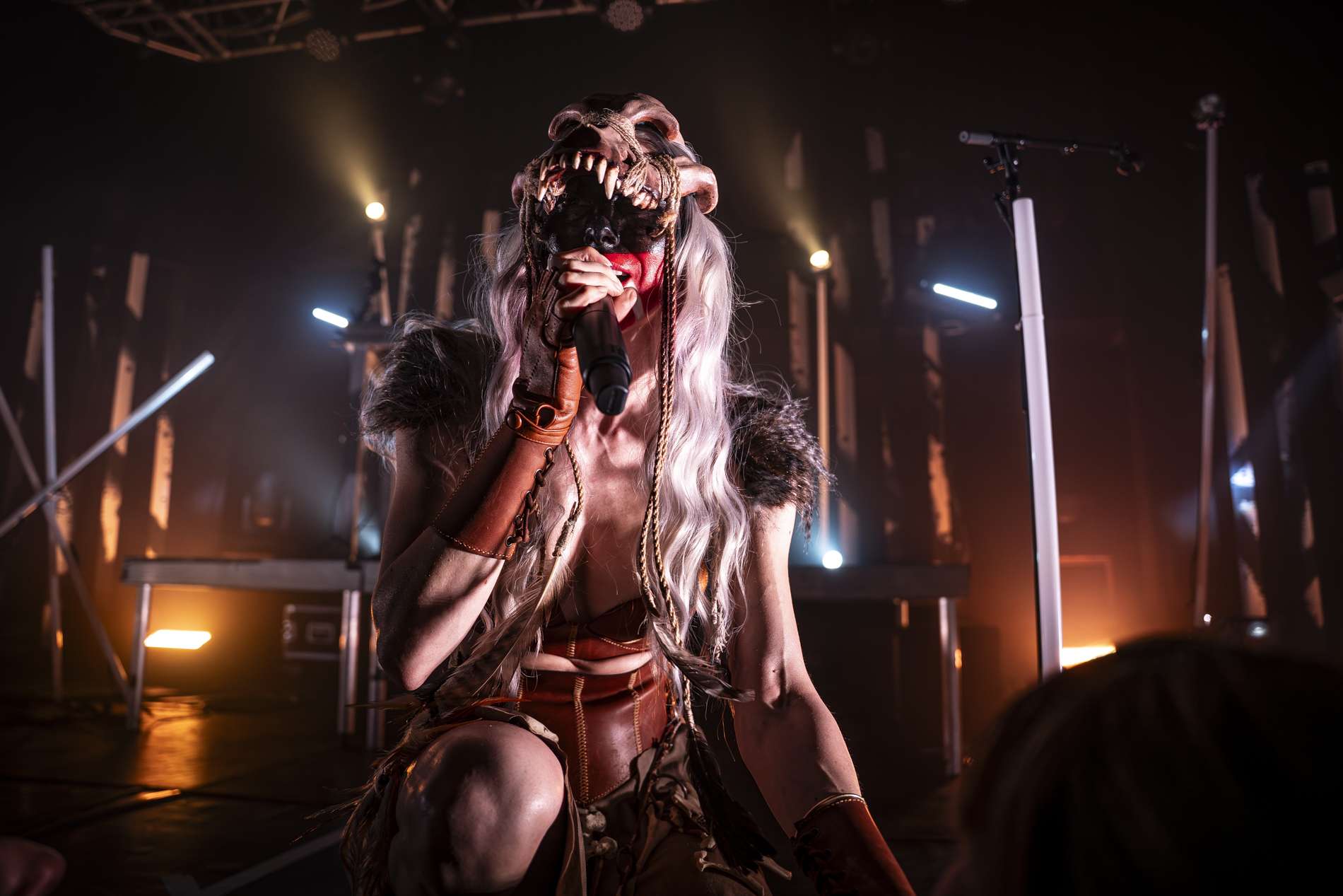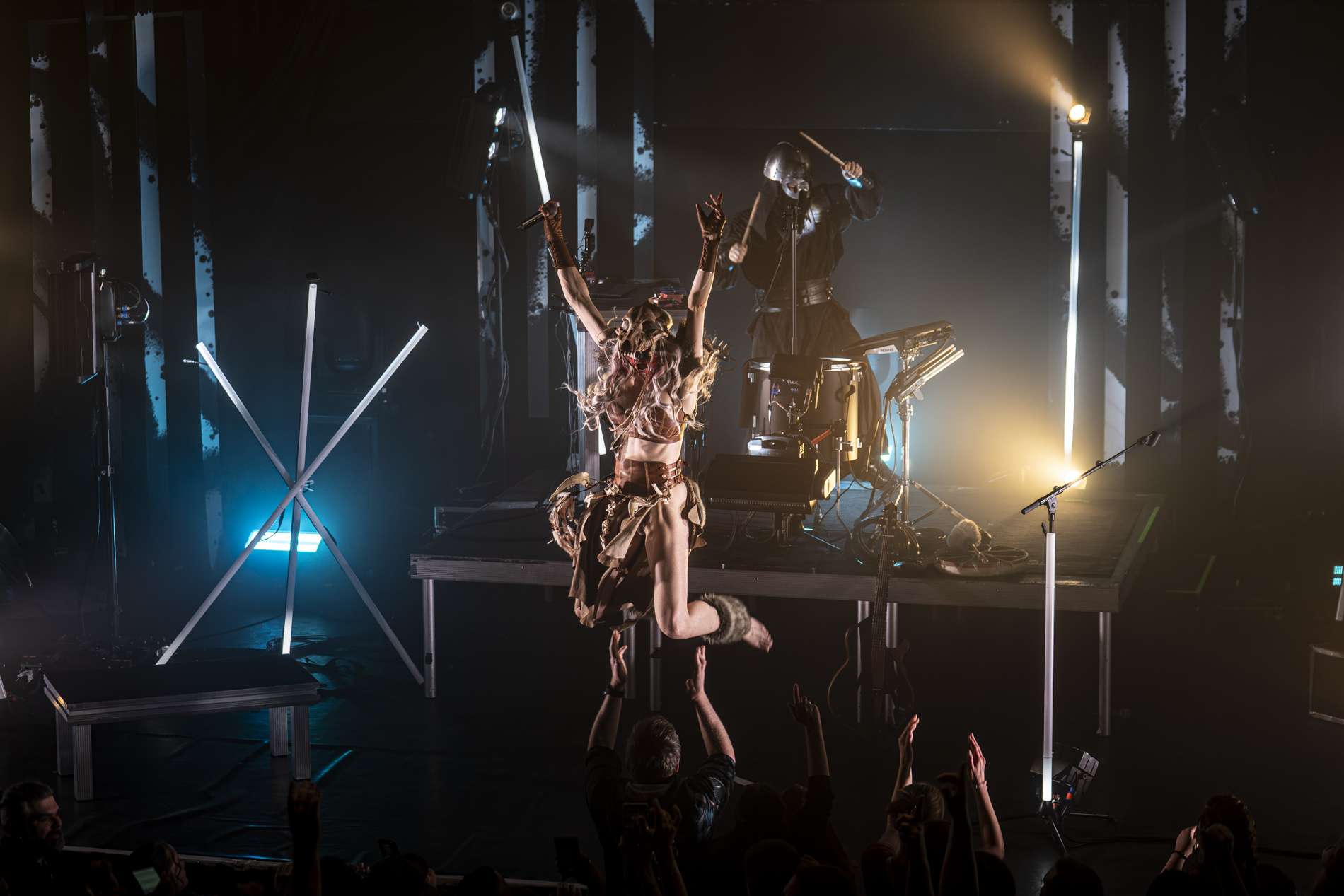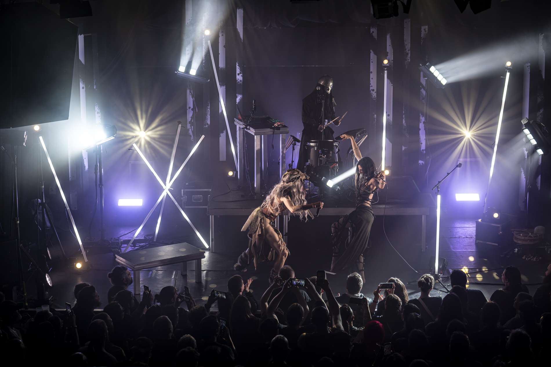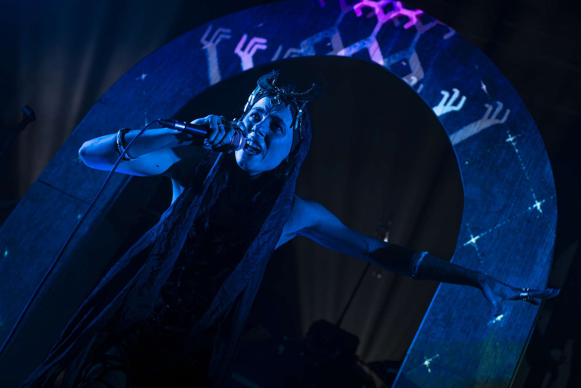 Puis, un moment de calme se présente avec l’interprétation de Ljósgarðr, qui signifie « jardin de lumière ». Avant le début de la chanson, la chanteuse, Asrunn, prend la parole et invite le public à se connecter à lui-même. Elle décrit la chanson comme une passerelle, un lien entre nous et nos êtres de lumière. C’est lorsque cette passerelle s’ouvre que l’on peut recevoir un message, un conseil de nos guides. La salle, d’ordinaire agitée, se calme instantanément. Chacun se concentre sur lui-même, dans un silence presque sacré. On perçoit une introspection partagée.