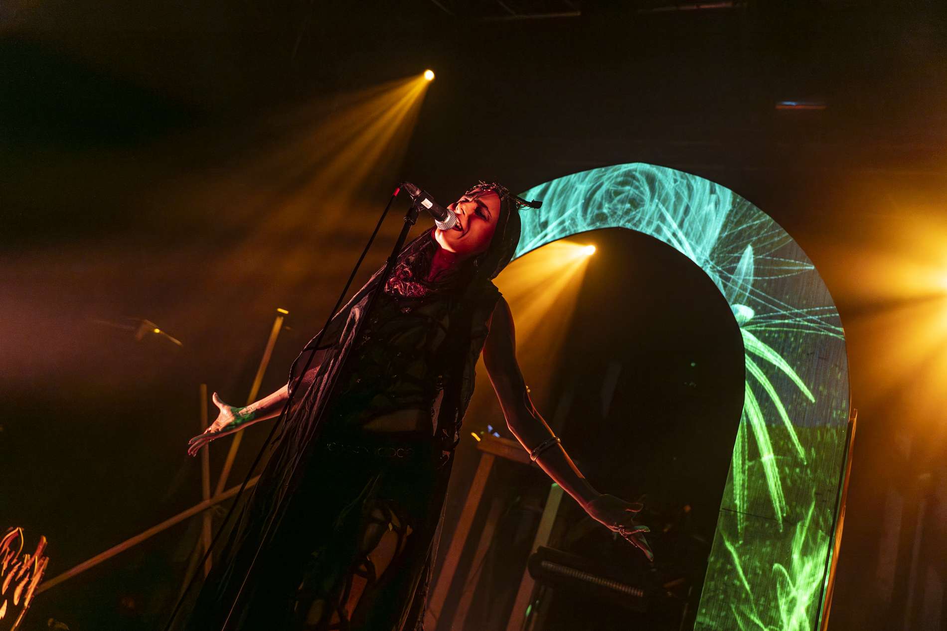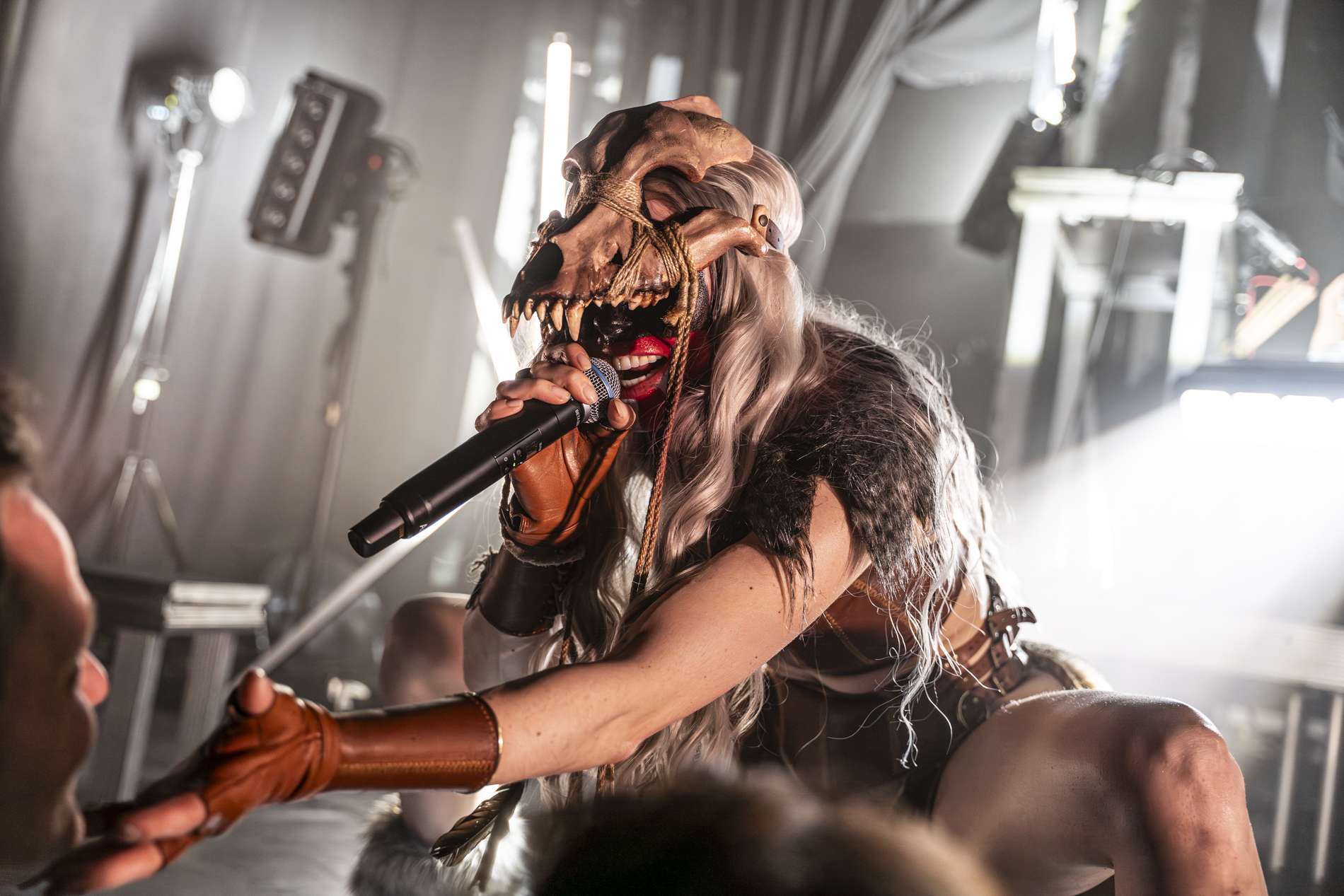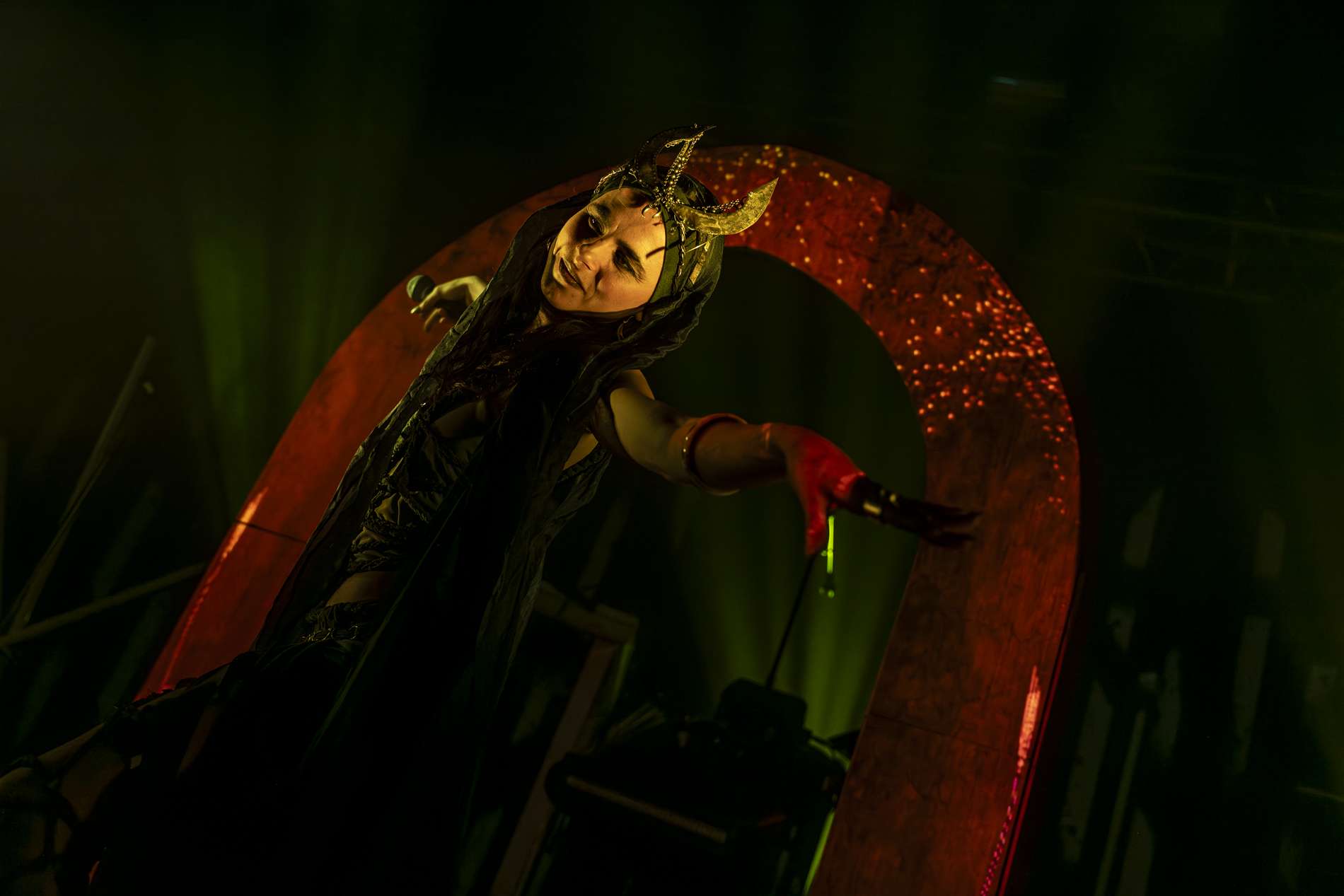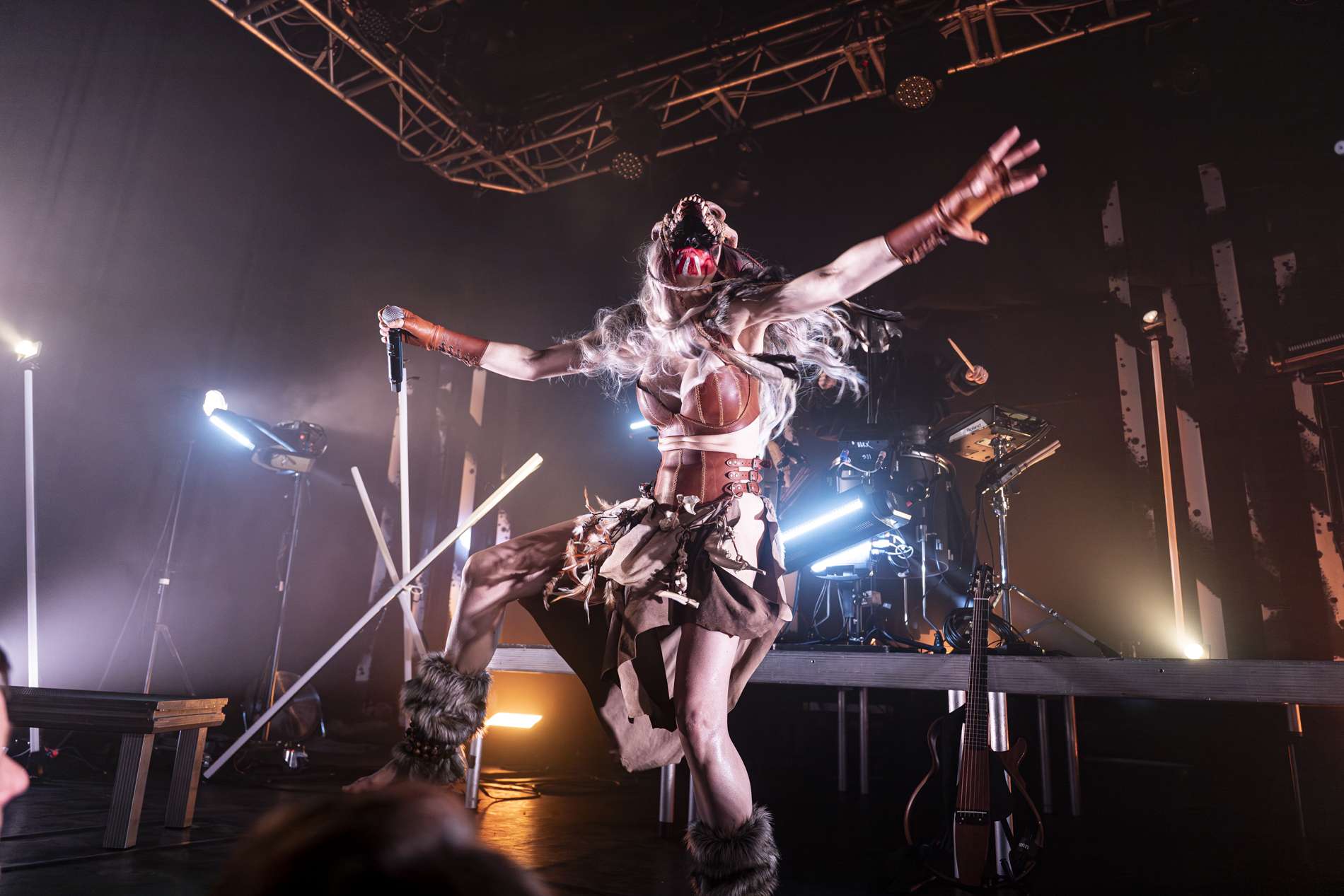 Puis, un moment de calme se présente avec l’interprétation de Ljósgarðr, qui signifie « jardin de lumière ». Avant le début de la chanson, la chanteuse, Asrunn, prend la parole et invite le public à se connecter à lui-même. Elle décrit la chanson comme une passerelle, un lien entre nous et nos êtres de lumière. C’est lorsque cette passerelle s’ouvre que l’on peut recevoir un message, un conseil de nos guides. La salle, d’ordinaire agitée, se calme instantanément. Chacun se concentre sur lui-même, dans un silence presque sacré. On perçoit une introspection partagée.