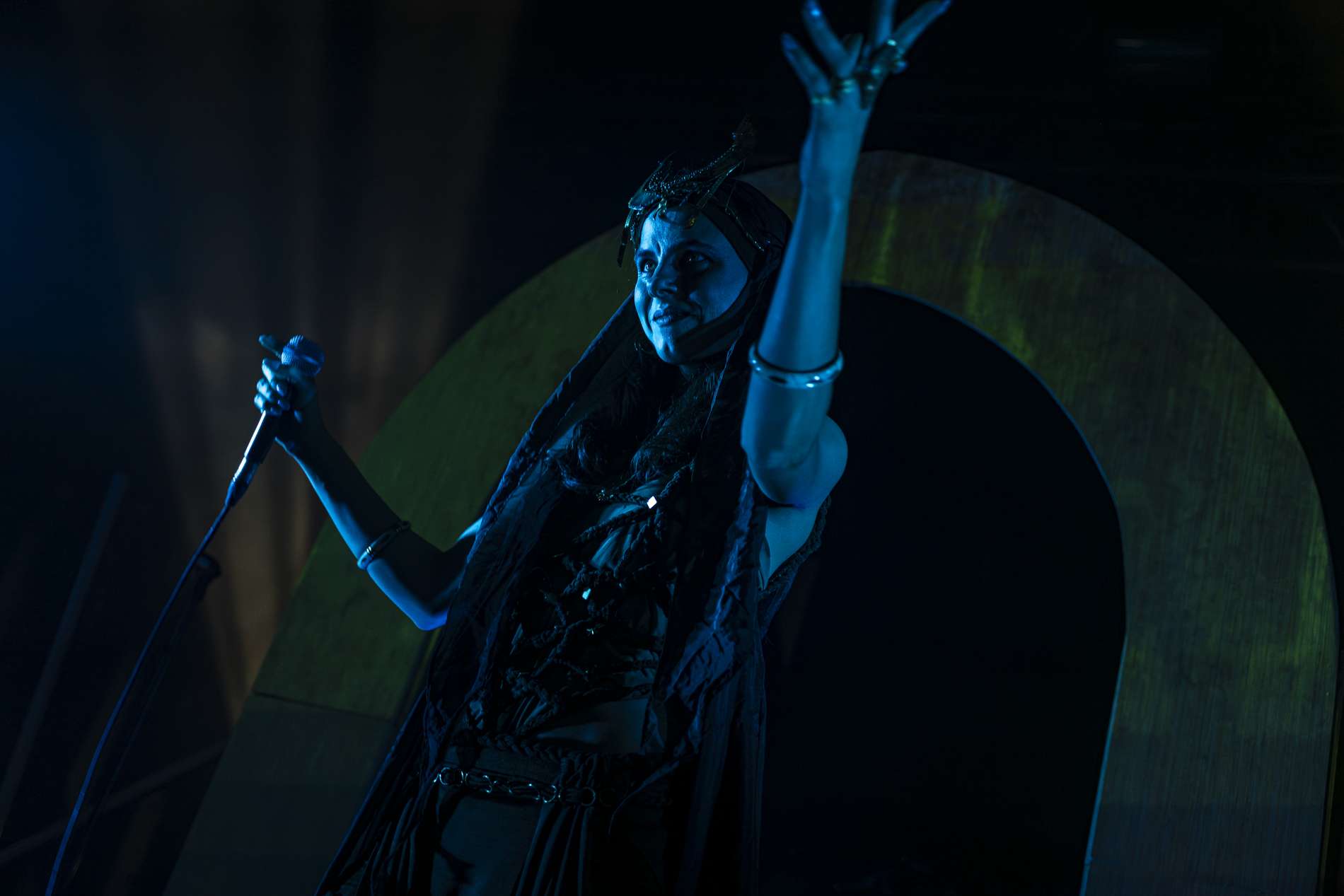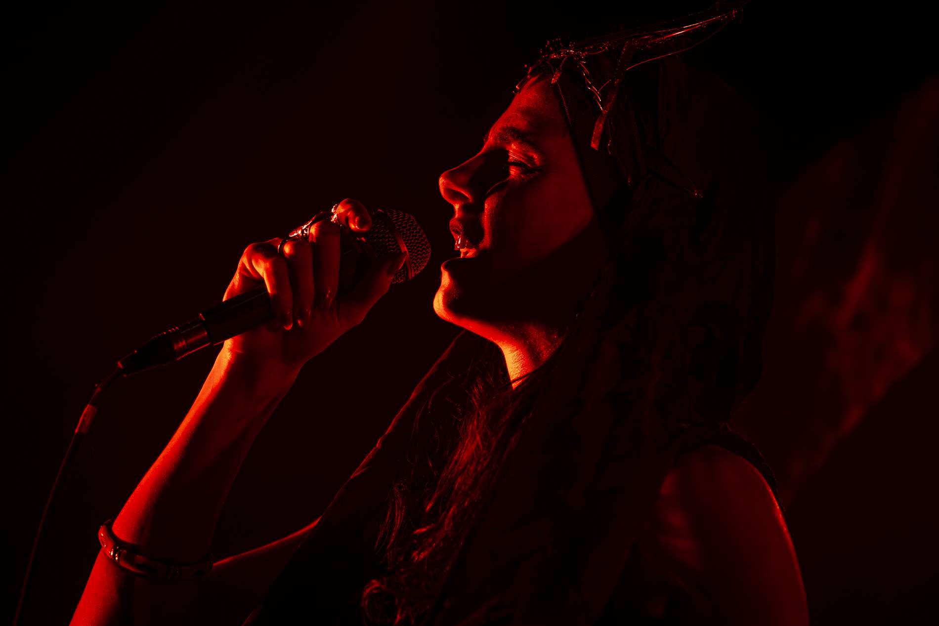 La soirée débute avec le groupe Mira Ceti. Dès les premières notes, une ambiance singulière s’installe. Il y a quelque chose de profondément apaisant dans leur musique, mais aussi de mystérieux. On a la sensation d’assister à une forme de rituel, comme si chaque morceau était une incantation. La voix de Mira évoque des chants anciens, presque sacrés, et plonge le public dans un état contemplatif. Les regards se figent, les corps ralentissent, et le silence entre les morceaux devient lui aussi un élément du spectacle. Mira Ceti ne cherche pas à impressionner par la puissance, mais par la finesse, et cela fonctionne. Le public est suspendu à chaque vibration, comme en apesanteur.