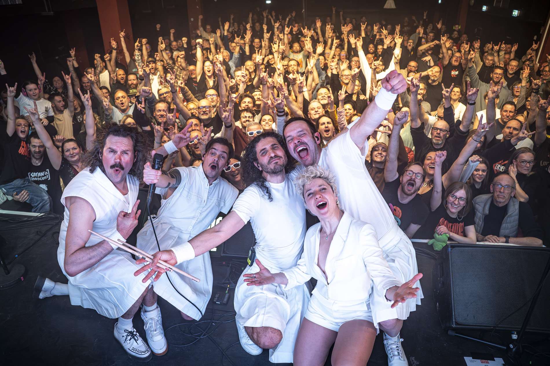 On a toujours accordé de l’importance à l’image, comme des groupes qu’on adore type Royal Republic. Là, il y avait aussi une réflexion sur les codes de genre, notamment avec le morceau « Adam« . Et puis, on s’est dit : pourquoi les robes seraient réservées aux femmes ? Au début, on se regardait dans le miroir en se disant “Bbon… on y va vraiment, là ?”. Et puis le public nous a rassurés. Même si ma mère, elle, était un peu plus mitigée sur le concept (rires).