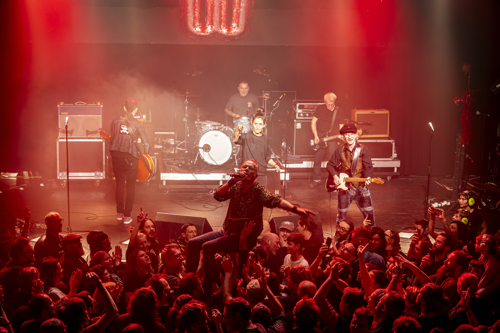 Comme toujours avec Les Wampas, le spectacle ne se limite pas à la musique. Fidèle à sa réputation, Didier multiplie les bains de foule, n’hésitant pas à traverser la salle juché sur une chaise, au plus près de ses fans. Et pour le final, le chanteur invite même le public à monter sur scène pour partager un moment de pure communion rock.