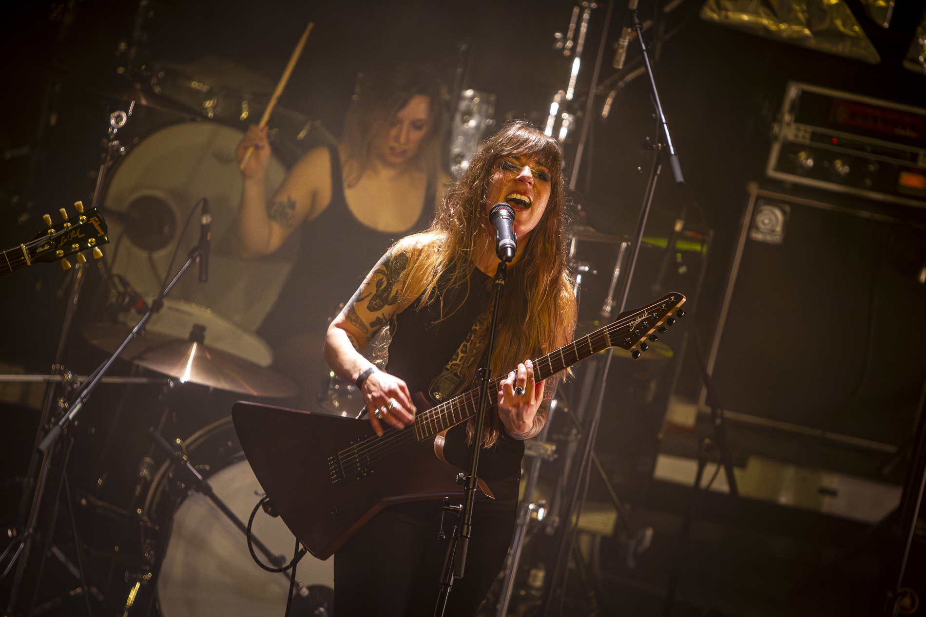 Salle comble au Noumatrouff de Mulhouse pour une soirée placée sous le signe du rock alternatif. En ouverture, les Fallen Lillies ont parfaitement lancé les hostilités avec un métal incisif et percutant. Porté par une énergie brute et communicative, le groupe semble avoir franchi un cap. Après plusieurs tournées et un passage remarqué au Hellfest, la scène est devenue leur véritable terrain de jeu. Les musiciennes affichent une assurance grandissante et livrent un set intense qui met immédiatement le public en condition. Un groupe à suivre de très près.