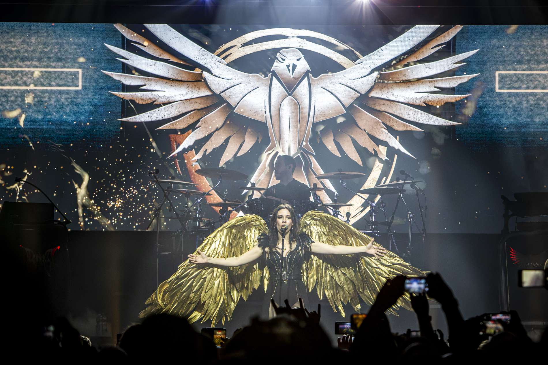 Ils ont bien évidemment offert au public des titres issus de leur nouvel album comme Break the Silence comme Rising High, Break the Silence, The Flood ou encore Ravens…Lorsque les premières notes de ce morceau retentissent, Jennifer revient sur scène avec de grandes ailes dorées qu’elle déploie lors du refrain chanté avec une intensité impressionnante, avec tant d’émotions dans la salle… Nous avons tous le souffle coupé par tant de beauté !