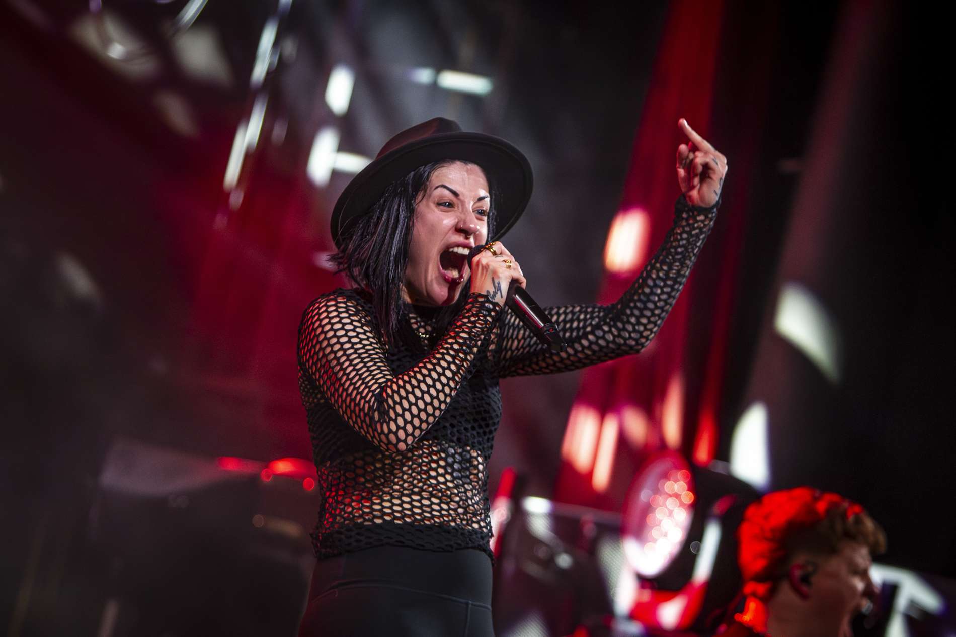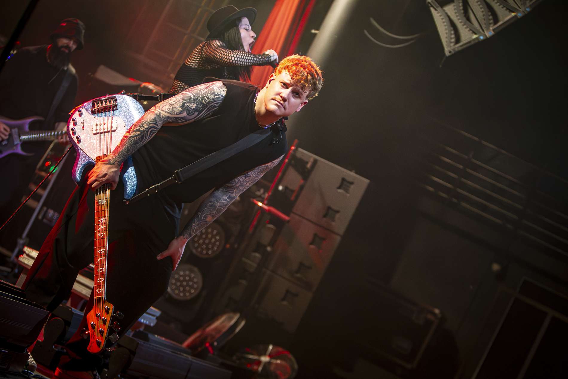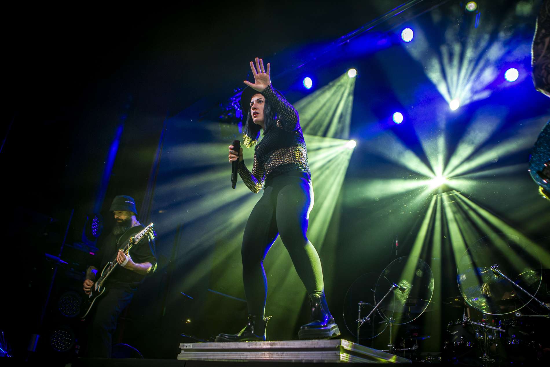 En deuxième partie, l’ambiance monte crescendo avec l’arrivée de Setyoursails sur scène. Un groupe de metalcore allemand qui a été créé en 2016 avec, à sa tête la chanteuse Jules Mitch. L’univers reposant qu’on a pu vivreprécédemment est remplacé par une énergie débordante du groupe qui interagit énormément avec son public. Vêtue de noir avec son chapeau, Jules veut faire passer un message important en brandissant un drapeau noir sur lequel est écrit en gros « No place for homophobia, fascism, sexism, racism ». Elle souhaite faire de la fosse un endroit de paix où tout le monde est accepté comme il est. Setyoursails est une très belle découverte qui dégage une belle énergie sur scène.
