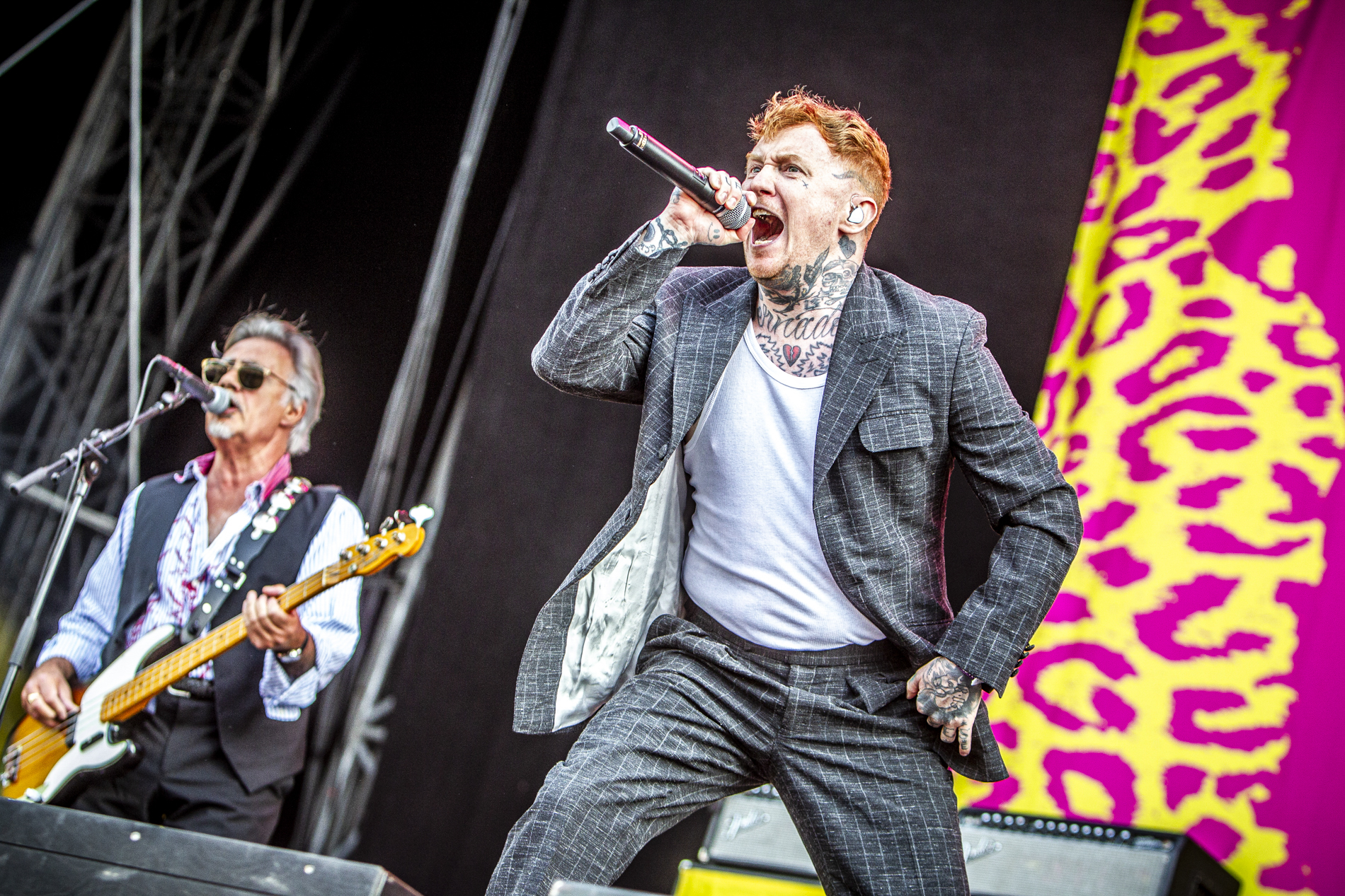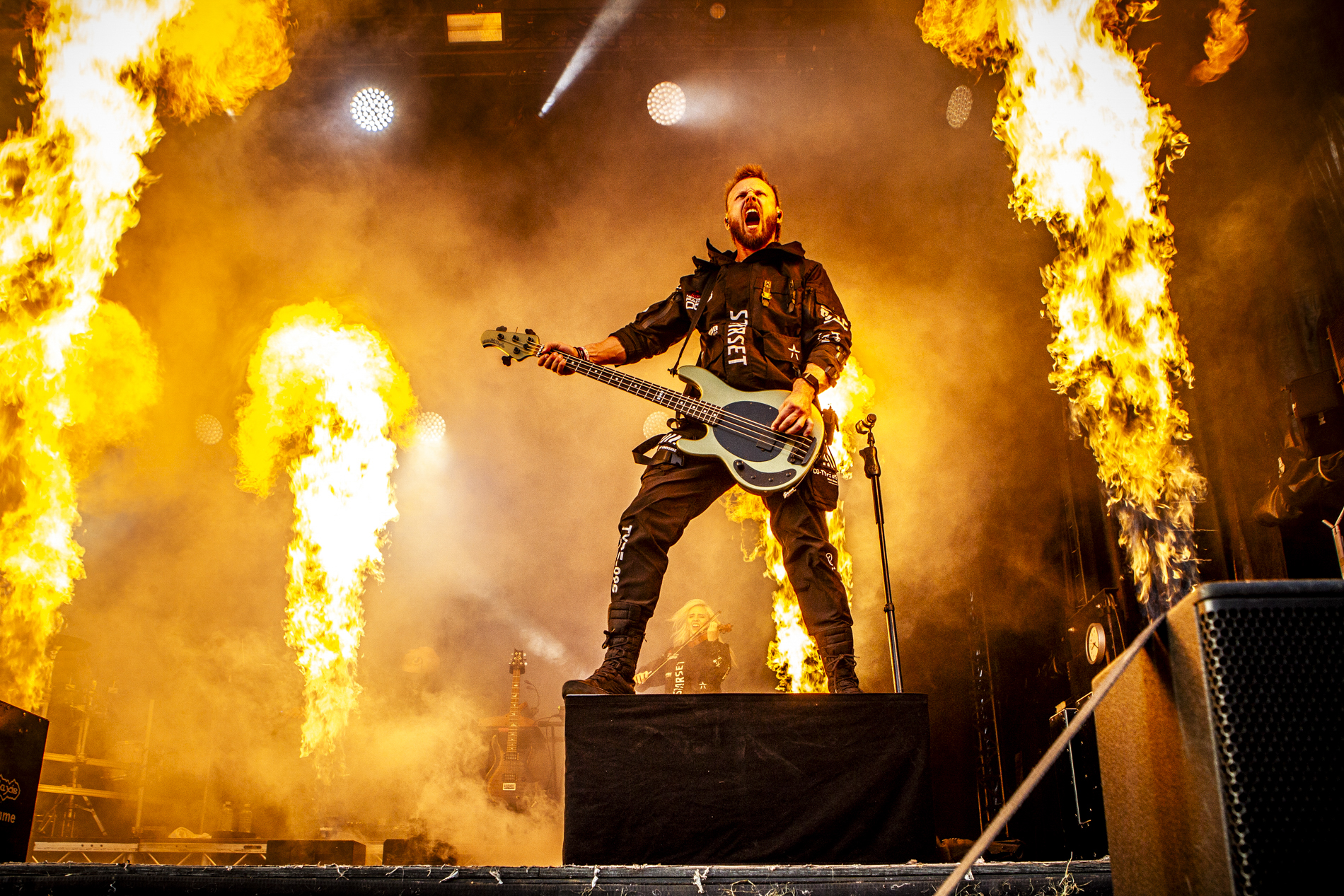 Changement total d’ambiance avec Electric Callboy. Ici, place à la fête. Le groupe allemand transforme littéralement le Greenfield en dancefloor géant. Entre electro, metalcore et humour assumé, des titres comme “Hypa Hypa” ou “We Got The Moves” déclenchent une euphorie collective. Le public saute, danse, rit — une parenthèse rafraîchissante qui casse les codes du festival metal traditionnel.