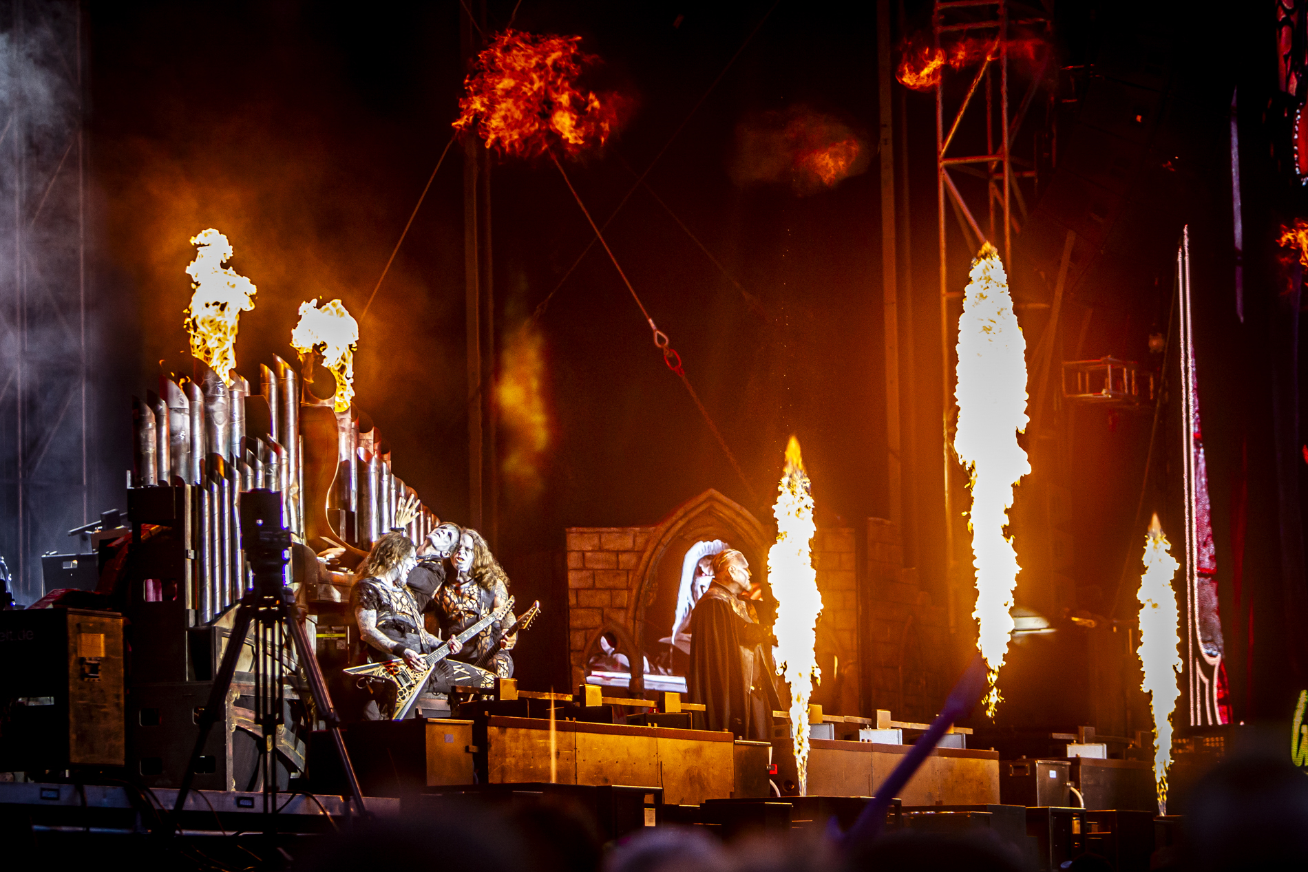 Powerwolf transforme quant à lui la scène en véritable cathédrale metal. Décor travaillé, attitude théâtrale, interaction permanente avec le public : chaque morceau devient un rituel. Les refrains, taillés pour être scandés, créent une communion presque religieuse avec les festivaliers.