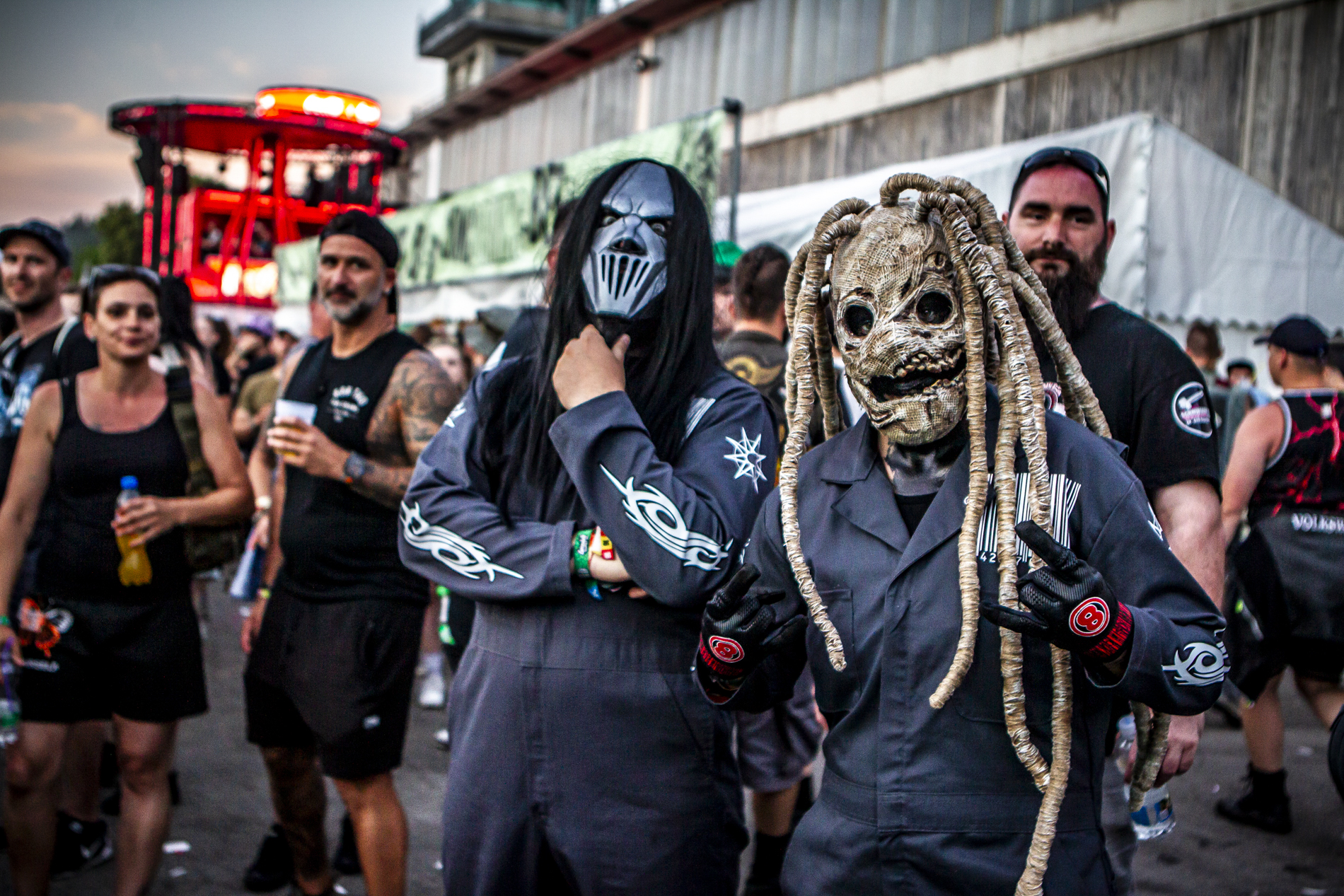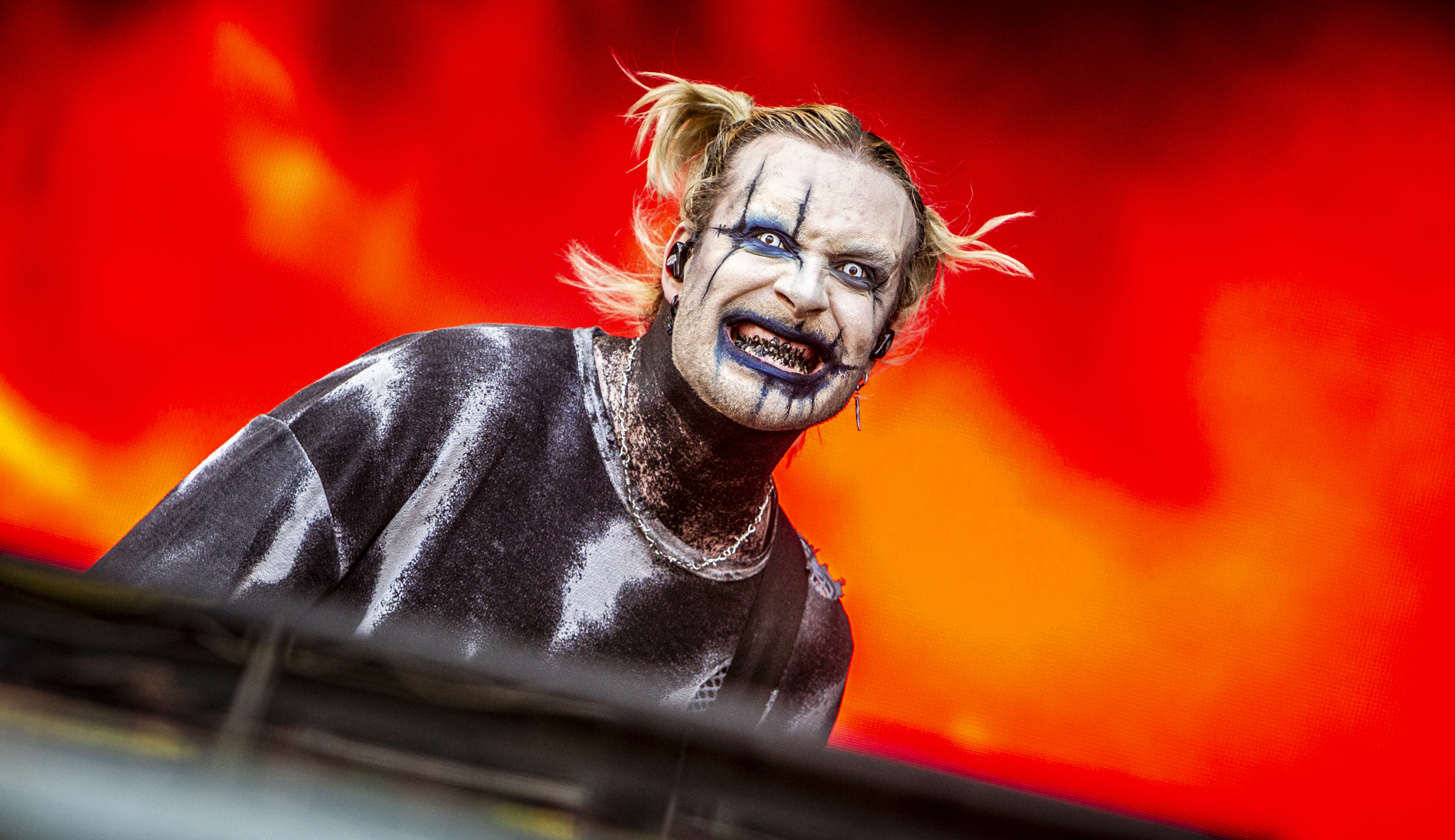 Slipknot livre une prestation écrasante. Dès les premières secondes, le groupe impose son rituel : percussions martelées, guitares abrasives, et une présence scénique quasi tribale. Les titres comme “Duality” ou “Psychosocial” déclenchent instantanément des vagues de pogos. Le public, compact, répond à chaque injonction de Corey Taylor, transformant le site en véritable chaos organisé. La scénographie, entre flammes et jeux de lumière agressifs, renforce cette sensation d’être plongé dans une machine incontrôlable.