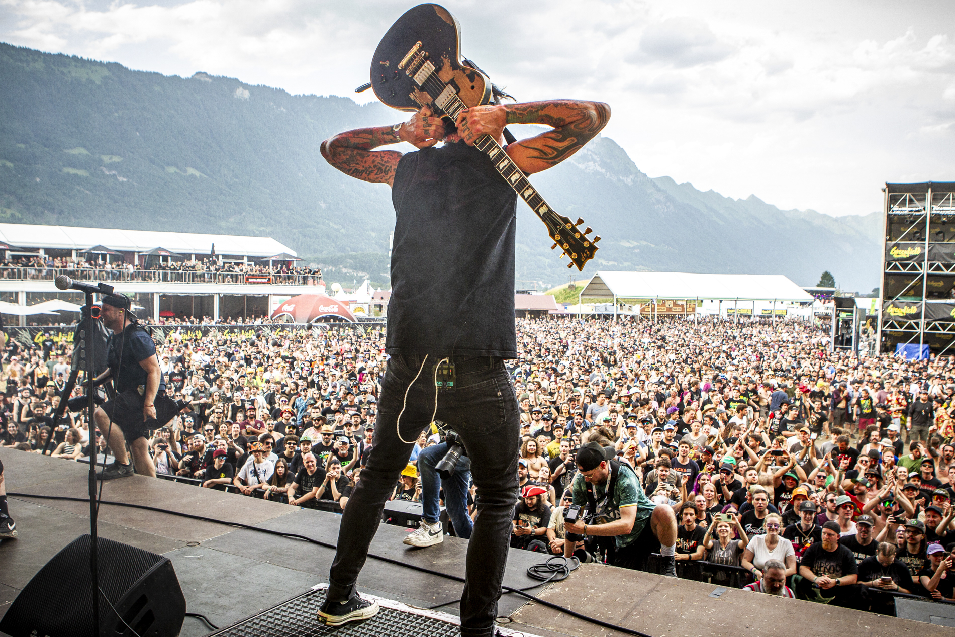 Un petit mot sur les marseillais de Landmvrks qui ont créé la surprise en faisant déplacer la quasi totalité des festivaliers de la grand scène vers la leur. Peu de groupes français se produisent au Greenfield, donc la tache était lourde de hisser bien haut le metal français devant un public rappelons le quasiment germanophone. Pari gagné vu l’intensité des pogos, des circle pit et le nombre affolant de slammer obligeant un renfort de la sécurité en devant de scène