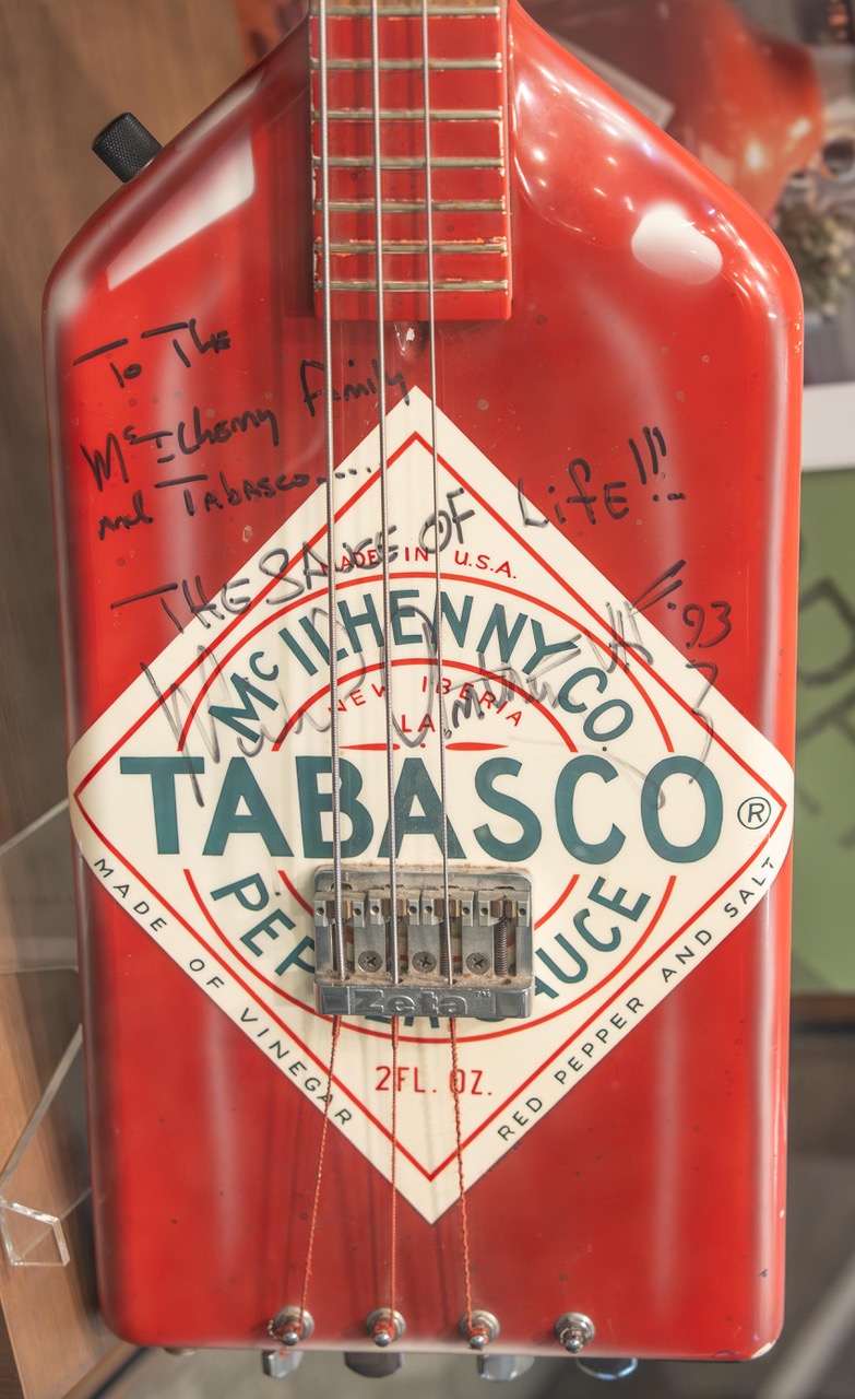 Dans l’univers du rock, l’objet visuel est capital. Une bouteille de TABASCO ® posée sur un ampli ou dans une loge de tournée, c’est plus qu’un condiment : c’est une déclaration d’intensité. Tout cela pourrait sembler absurde… jusqu’à ce qu’on voit Michael Anthony de Van Halen brandir sa basse en forme de TABASCO ®.